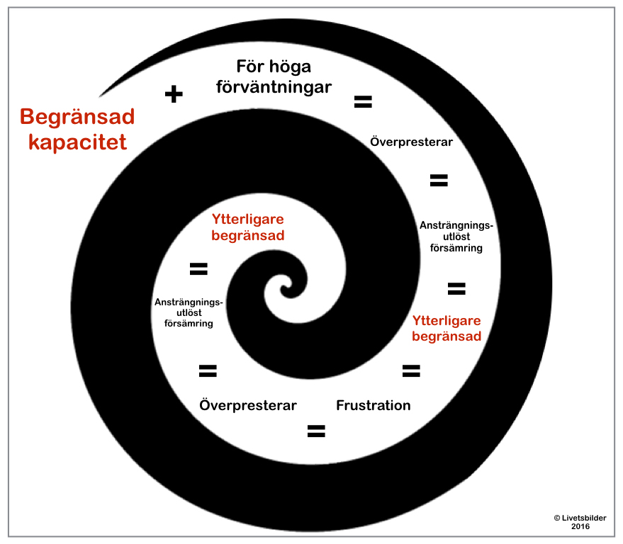 Ofta är det en rundgång mellan dessa tre – likt att ett elakt, destruktivt kretslopp. Och just det är nog det jag tycker är den jobbigaste följden av att leva med belastningskänslighet – begränsningsspiralen.