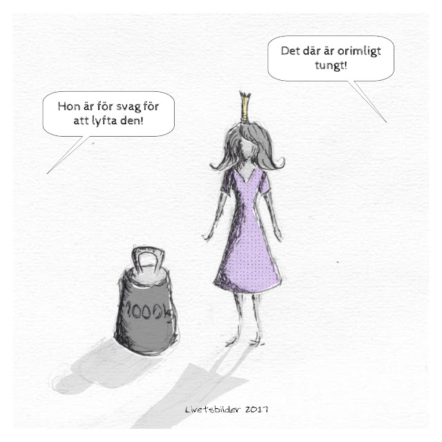 Sanningen är ju att om jag misslyckas att lyfta något så kan orsaken till det finnas både hos mig och tyngden. Jag kan vara för svag för att lyfta den, men det kan lika gärna handla om att tyngden är för tung. Och den kan vara det för de flesta människor, inte bara för mig.