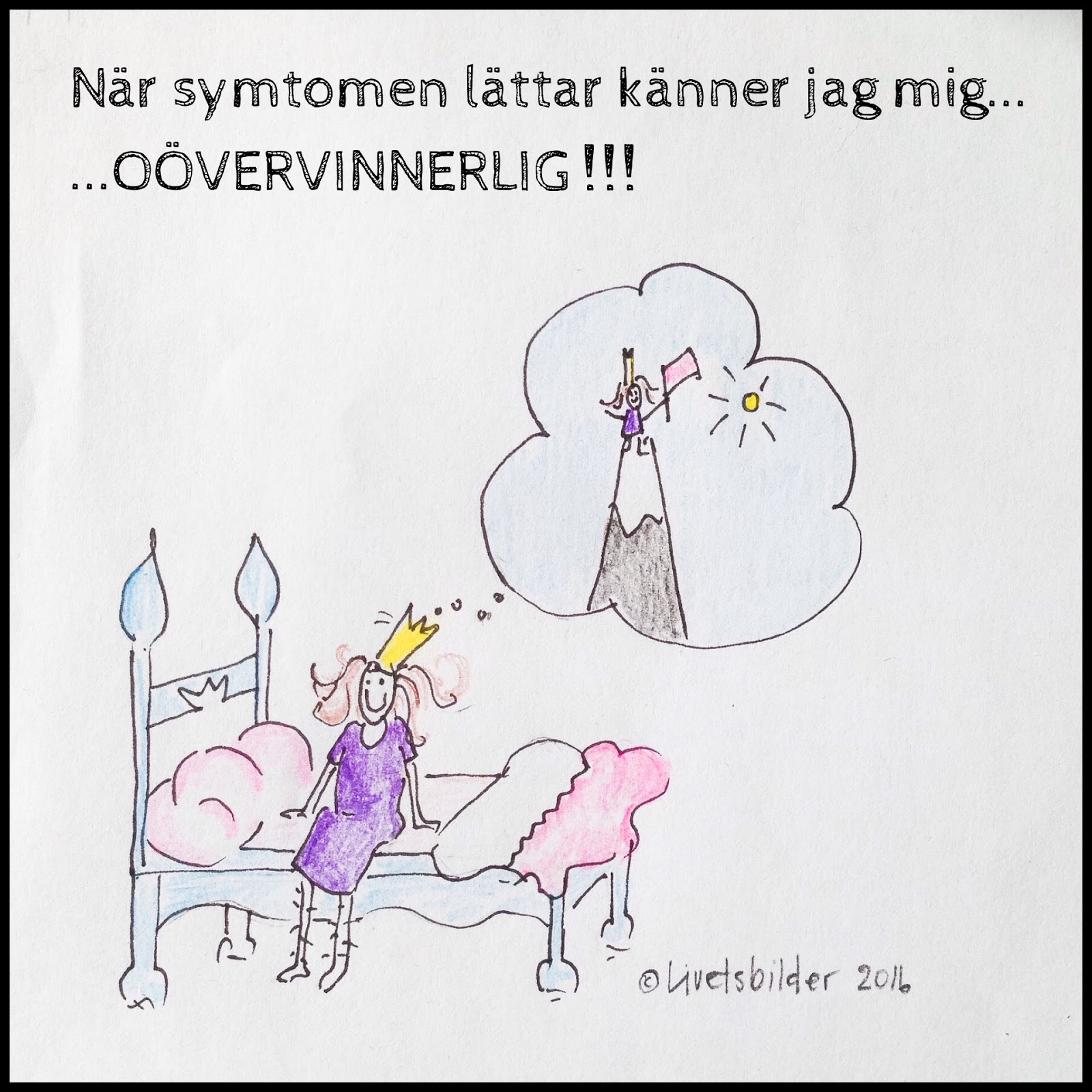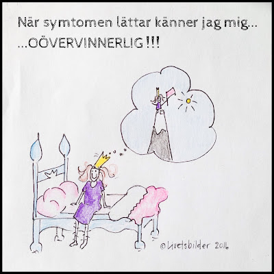 Det här alltså: ”Ibland får jag känslan av att det inte är riktigt tillåtet att stanna upp och må bra på min nivå. Utan att en förbättring förpliktigar att jag genast börjar utmana mig själv mer.” Blir lite gråtfärdig av att läsa det här just idag. För jag har nog känt just så och ökat på flera fronter samtidigt. Eftersom det flutit på ok ett tag, eftersom jag jobbar 75% och det är ju nästan 100% (heltid=frisk?). Igår låg jag däckad hela eftermiddagen, troligtvis pga att jag pressat framåt så fort jag kunnat. Min man lyckades idag förklara för mig hur dumt det skulle vara att åka till jobbet idag, bara för att huvudvärken inte spränger utan bara ligger i bakgrunden. Ändå är jag hemma med dåligt samvete och skuld och skam. För jag är ju nästan frisk och inte längre godkänd av FK. Jag känner mig jagad att alltid krama ut allt ur varje stund… Det finns inte längre utrymme för att lyssna på signalerna från kroppen. Men om jag inte gör det blir jag ännu sämre snart. Tack för din text❤
