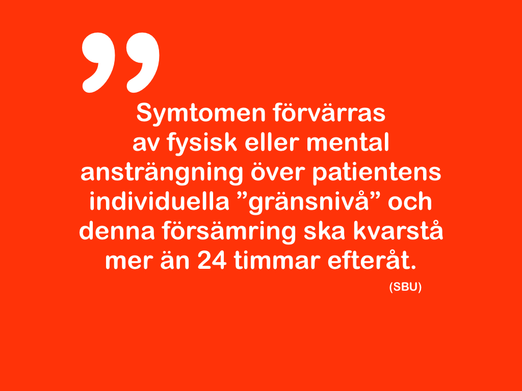 Men det kanske viktigaste kriteriet är: Ansträngningsutlöst försämring – Postexertional Malaise, enkelt förkortat PEM.