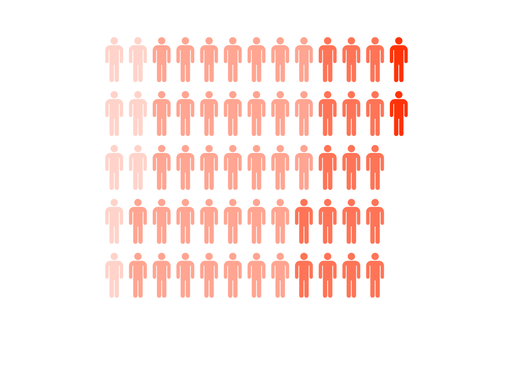 62 personer svarade på mina frågor. Åtta stycken med mild ME, 35 stycken med måttlig ME, 17 stycken med svår ME och två stycken med mycket svår ME, som fått hjälp av sina anhöriga att svara.