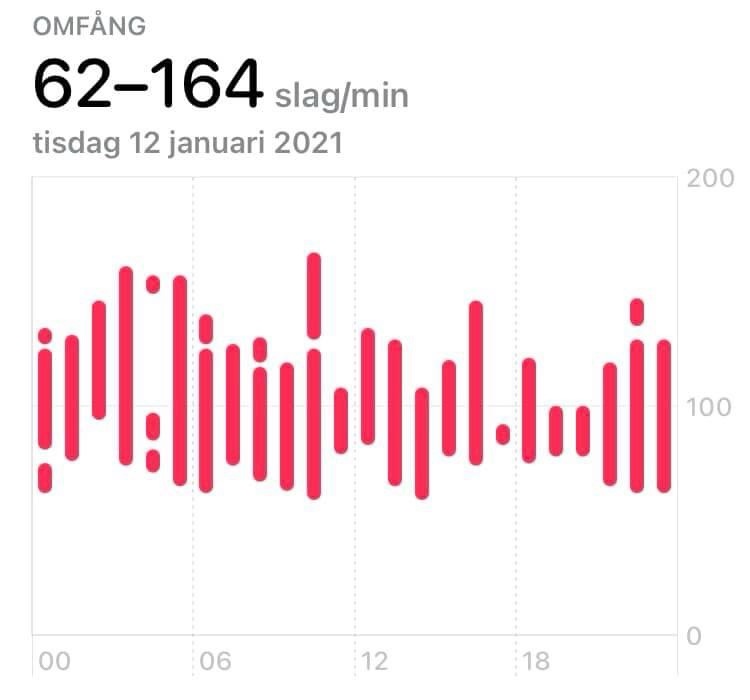 Bilderna är skärmdumpar från några av mina mätredskap och min dagbok. Den första bilden föreställer min puls vid två olika toalettbesök och är en jämförelse mellan ett tillfälle i januari utan behandling med betablockerare och ett nu i april då jag är relativt välbehandlad (appen Heart Graph kopplat till Apple Watch). Nästa par bilder är en överblick av två olika dagars puls samma dagar som ovan (appen Hälsa kopplat till Apple Watch.) De två följande bilderna kommer från mätningen av min sömn, även dessa från samma datum (appen Sleep Meister). Sista bilden är en skärmdump från en del av min dagbok (appen OneNote).