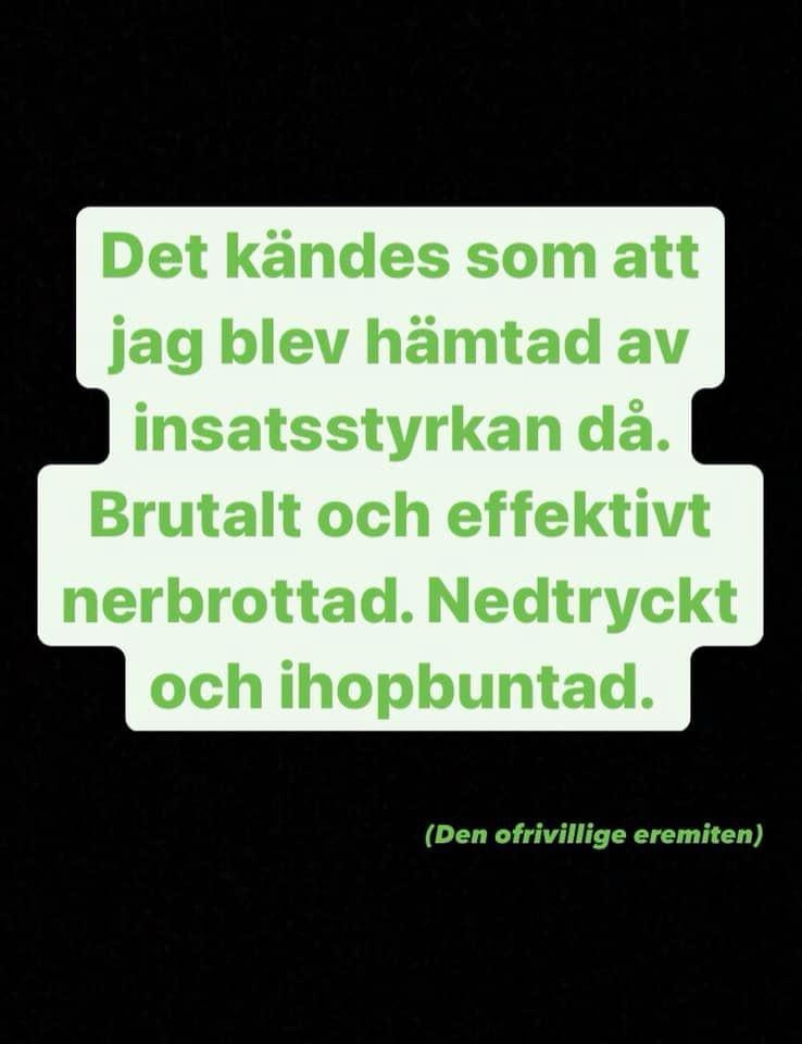 Vad händer med alla oss? För det är ju inte bara jag, vi är så många. Hur kommer samhället hantera övergreppen? Övertrampen? Kommer man fortsätta sopa det under mattan eller kommer någon stå upp för oss nu? Erkänna vad myndigheten sysslat med?