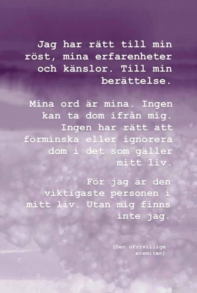 Mina ord är mina. Ingen kan ta dom ifrån mig. Ingen har rätt att förminska eller ignorera dom i det som gäller mitt liv.