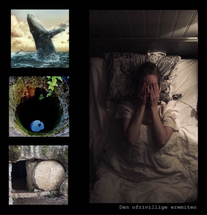 Rent konkret tycker jag att det faktiskt finns stora likheter mellan att befinna sig i en fiskmage, en djup brunn eller grav och som svårt ME-sjuk tvingas till sängläge i mörker 24/7. Men det är bara min högst personliga åsikt.
