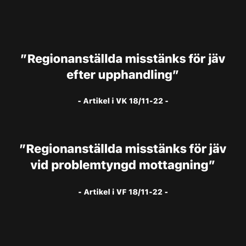 Länk till artikeln i VK: https://www.vk.se/2022-11-18/regionanstallda-misstanks-for-jav-efter-upphandling