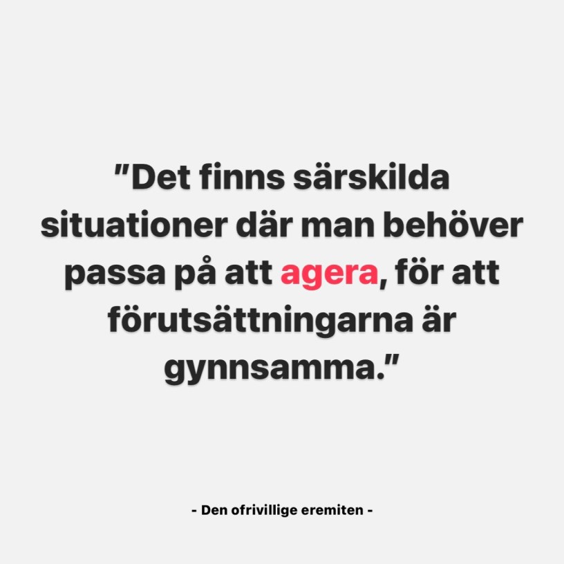 Vi har ett uttryck i Sverige som säger att man ska smida medan järnet är varmt. Det betyder på ett ungefär att det finns särskilda situationer där man behöver passa på att agera, för att förutsättningarna är gynnsamma.