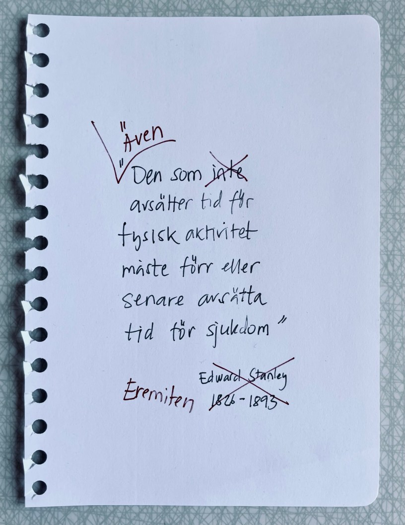 ”Den som inte avsätter tid för fysisk aktivitet måste förr eller senare avsätta tid för sjukdom.” (Edward Stanley 1826-1893)