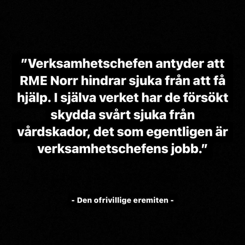 ME-dagboken på Instagram skrev faktiskt om det här för mindre än en månad sedan och förutspådde då att vi skulle få se smutskastning som försvar på relevant kritik även gällande det som händer i Västerbotten. Och nu är vi redan där.