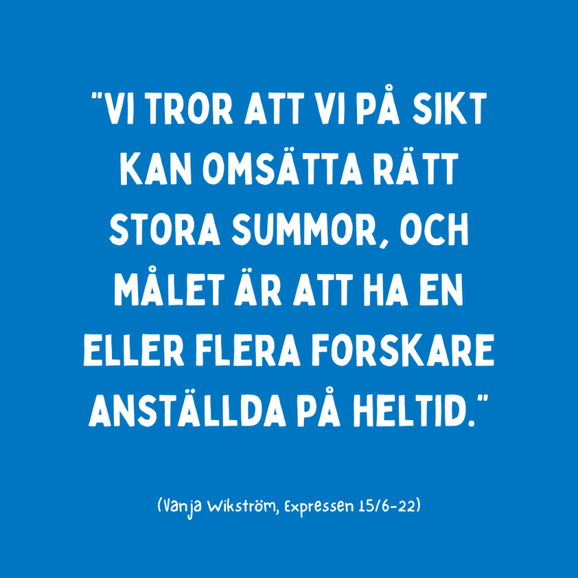 ”I slutet av förra året kläckte vi en idé som knyter samman allt vi tidigare gjort, och allt vi tycker är spännande – samtidigt som vi kan generera pengar till ME-forskning. Paret har startat World of Alidia: ett NFT-projekt*, där de tar fram unik digital konst som blir inträdesbiljetter till ett, mestadels kvinnligt, nätverk, komplett med en egen medlemsklubb som de kommer att fylla med inspirerande innehåll. Och fem procent av parets royalties går till en fond för ME-forskning, menar Vanja. – Vi tror att vi på sikt kan omsätta rätt stora summor, och målet är att ha en eller flera forskare anställda på heltid. Det är ett sätt att försöka hjälpa både oss själva och andra.” (Vanja Wikström, Expressen 15/6-22)
