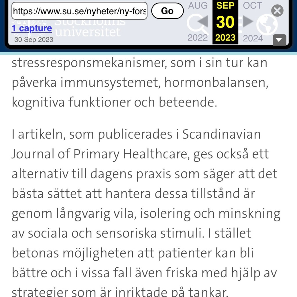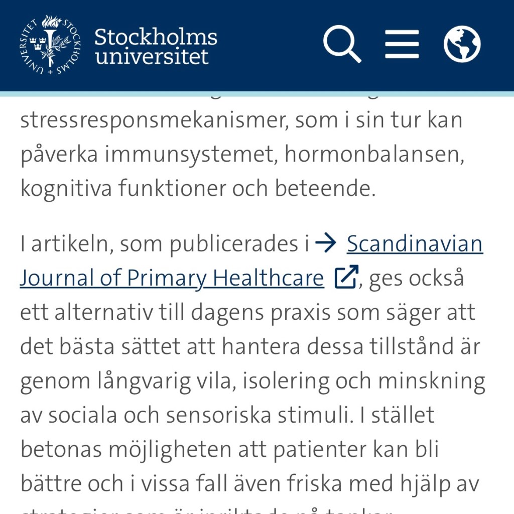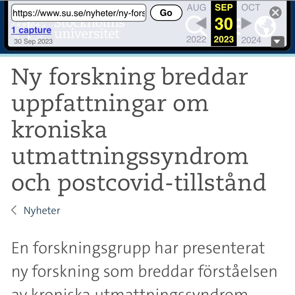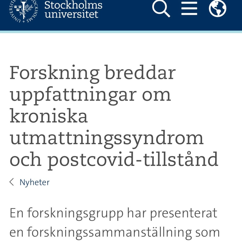 Igår berättade jag om att Stockholms universitet hade lagt upp falska uppgifter på sin hemsida. Idag har de gjort förändringar i informationen om den ”nya forskningen” gällande Myalgisk Encefalomyelit (ME) och postcovid.