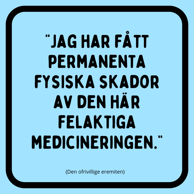 Jag har fått permanenta fysiska skador av den här felaktiga medicineringen. Jag tänker inte gå in på exakt vilka skador för det är privat, men det här har fått så stora konsekvenser för mig och min familj på ett sätt som ni inte kan föreställa er.