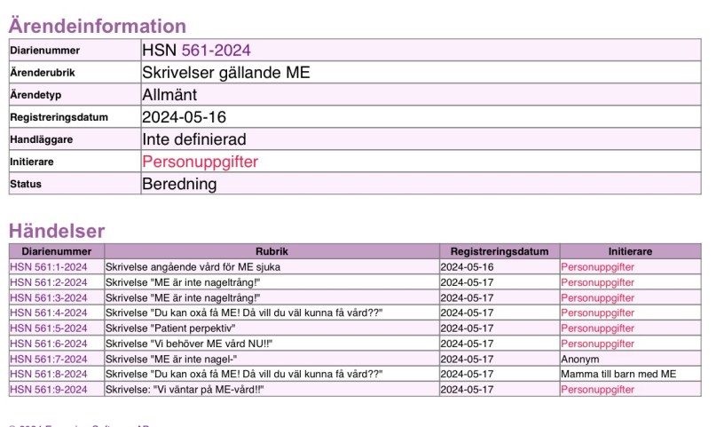 Nu ser vi till att fortsätta fylla diariet (det är alltså där inkommande post till regionen måste registreras) och direktörens bord med våra protester över att region Västerbotten hotar att lägga ned ME-mottagningen.