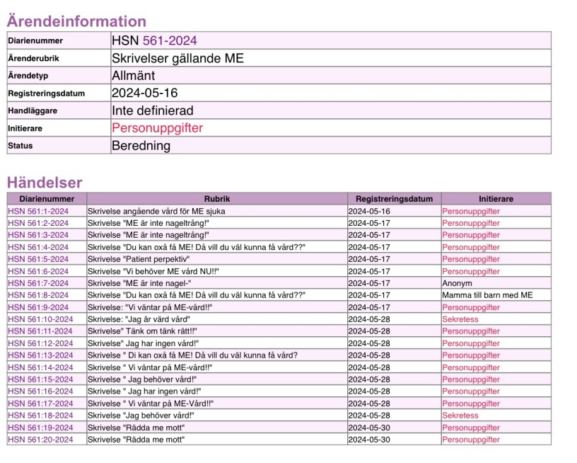 I regionen Västerbottens diarium växer våra protester mot att regionen har satt ME-mottagningen på sin besparingslista.