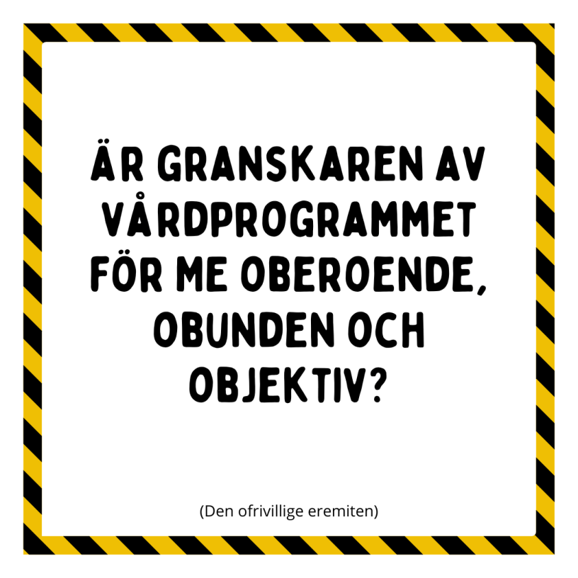 Att en person med denna typ av engagemang tillåts ha inflytande över vårdprogrammet för ME rimmar väldigt illa med region Stockholms krav på att arbetet med kunskapsstyrning ska vara oberoende, obundet och objektivt.