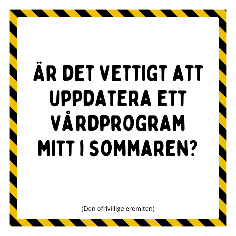 Sjukdom och vårdbehov tar inte semester och vårdprogrammen i viss torde vara en ytterst viktig kunskapskälla för alla vårdens sommarvikarier. För det är ju faktiskt inte bara så att vårdprogrammet blir sämre. Det blir sämre i en period där den eventuella kontinuitet som finns störs av personalbyten.