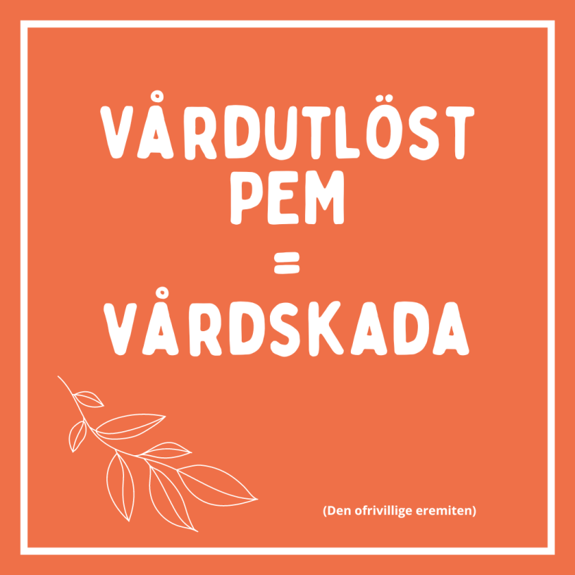 Vi är många med PEM som fått irreversibla vårdskador och jag är väldigt glad att äntligen höra att någon pratar om riskerna för vårdskador, på grund av PEM, i media.