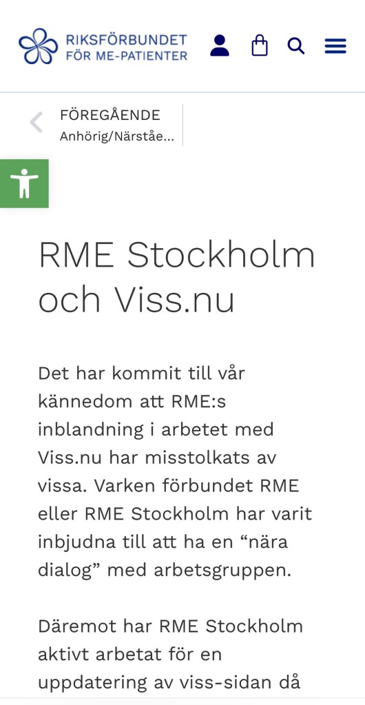 ”Det har kommit till vår kännedom att RME:s inblandning i arbetet med Viss.nu har misstolkats av vissa. Varken förbundet RME eller RME Stockholm har varit inbjudna till att ha en “nära dialog” med arbetsgruppen.”