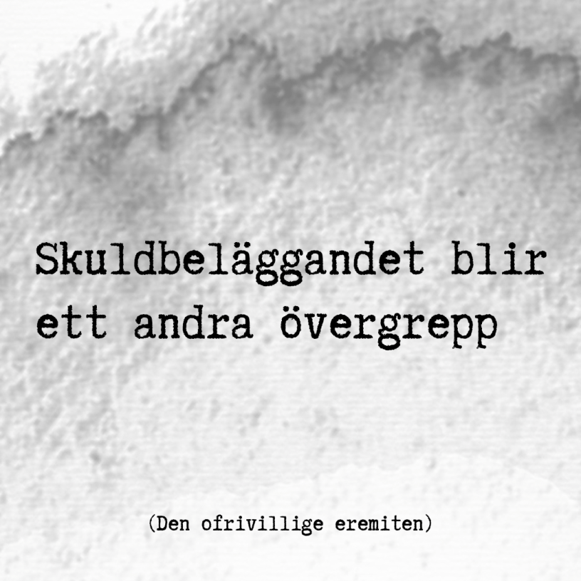 Än en gång får jag skylla mig själv. Det är mitt eget fel att jag blev sjuk och det är mitt eget fel att jag inte blir frisk igen.”