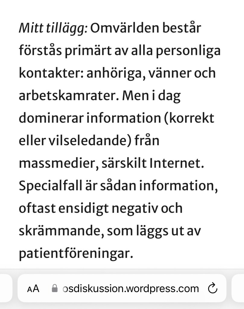 ”I inlägget 8 maj gav jag ett referat av en multiförfattar-artikel om det här problemet. Artikeln inspirerade allmänmedicinaren Lars Englund och mig till en kommenterande och utvidgad text som i oktober har blivit publicerad i tidskriften AllmänMedicin nummer 3, 2024.” (arkiverad länk till bloggen som inte genererar klick)