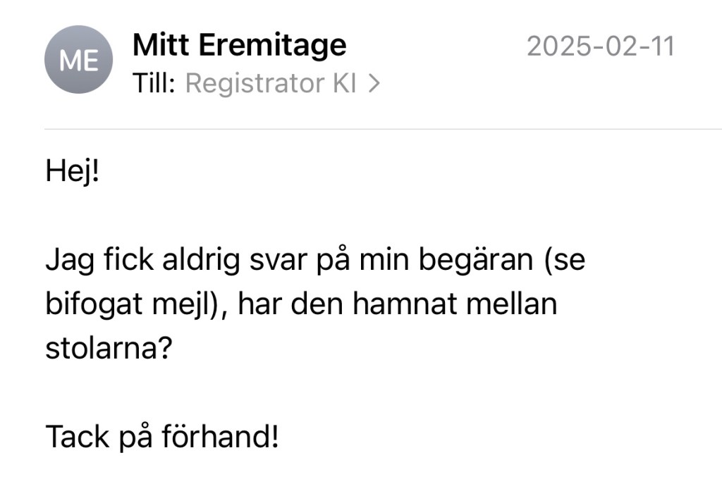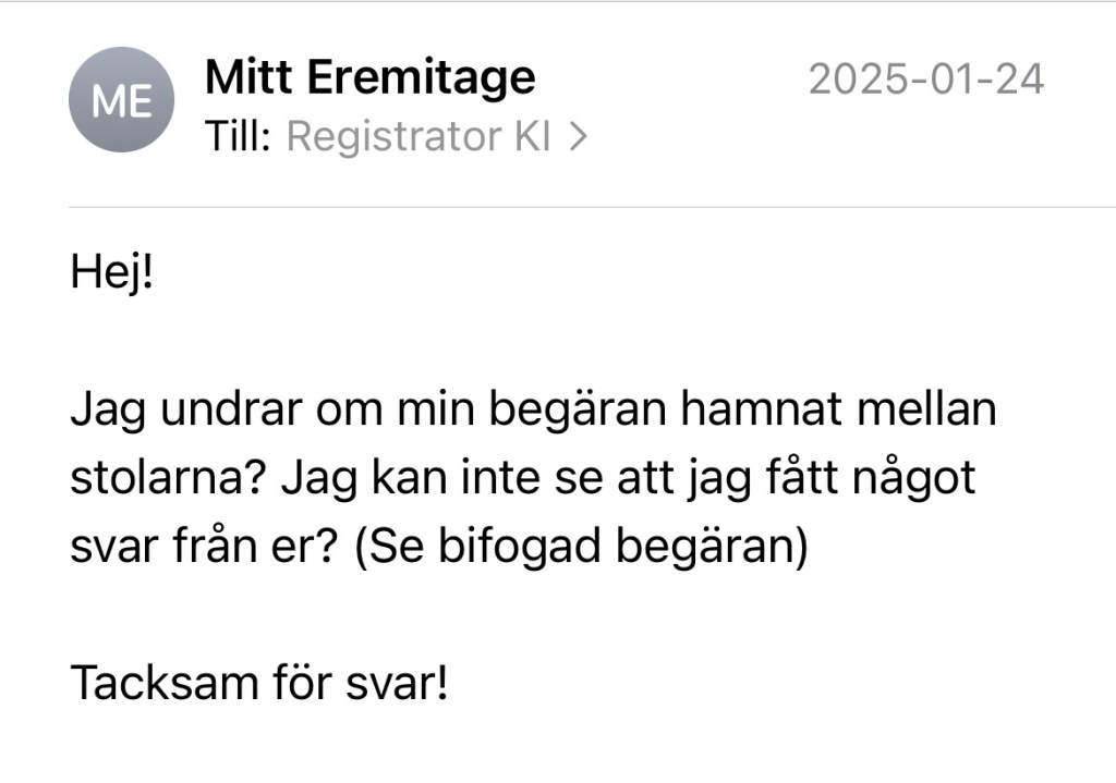 Nedan följer skärmdumpar av min begäran om handlingar från KI: