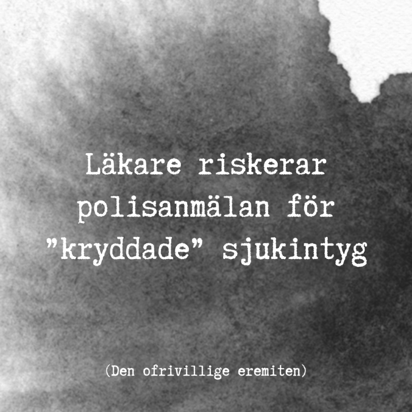 För vad kommer hända med den som behöver ett intyg för ersättning från sjukförsäkringen och hamnar hos en sjukskrivande läkare som är rädd för att bli polisanmäld av Försäkringskassan? Kommer sjukskrivning bli ännu hetare potatis i vården än vad den redan är? Jag har hört så många sjuka berätta om möten med läkare som har en problematisk attityd till patienter som behöver sjukskrivning. Läkare som i många fall helst vill slippa sjukskriva och därmed är avvisande och otrevliga mot patienterna. Om läkarna dessutom blir stressade av risken av att bli polisanmälda för andra saker än brottslighet, riskerar detta att försämra bemötandet ytterligare. Och därmed rättssäkerheten för patienterna.