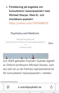 ”Den 2/6 2025 gästades Psykiatri Sydväst digitalt av Oxford-professorn Michael Sharpe, som ses som en av de främsta representanterna för konsultation-liaisonpsykiatri i världen.”
