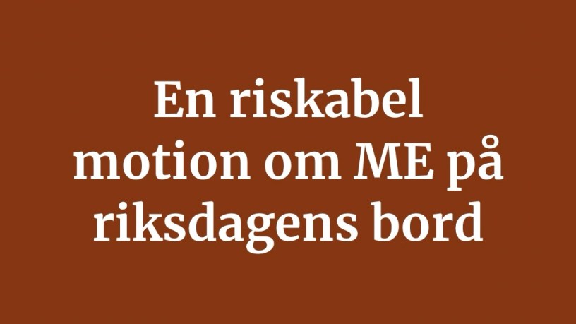 Just nu pågår riksdagens allmänna motionstid där riksdagens ledamöter kan lämna in fristående motioner om alla frågor riksdagen kan besluta om och jag fick just notis om en motion om ME.