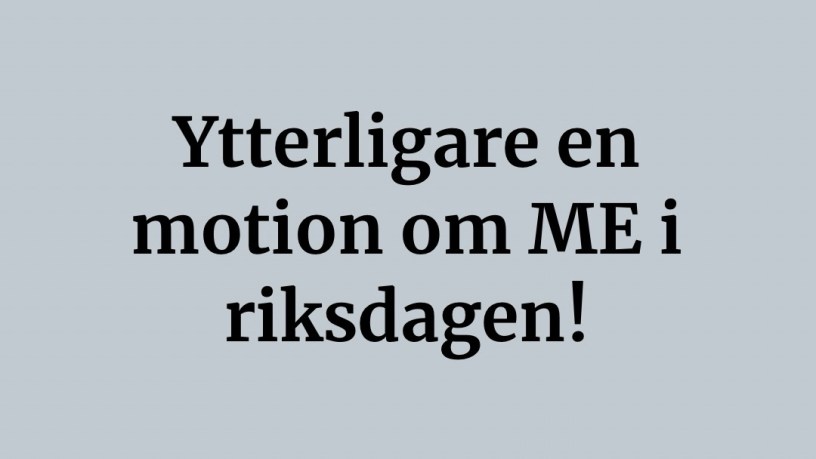 Häromdagen skrev jag om en riskabel motion om ME i riksdagen. Nu har ytterligare en motion lämnats in.