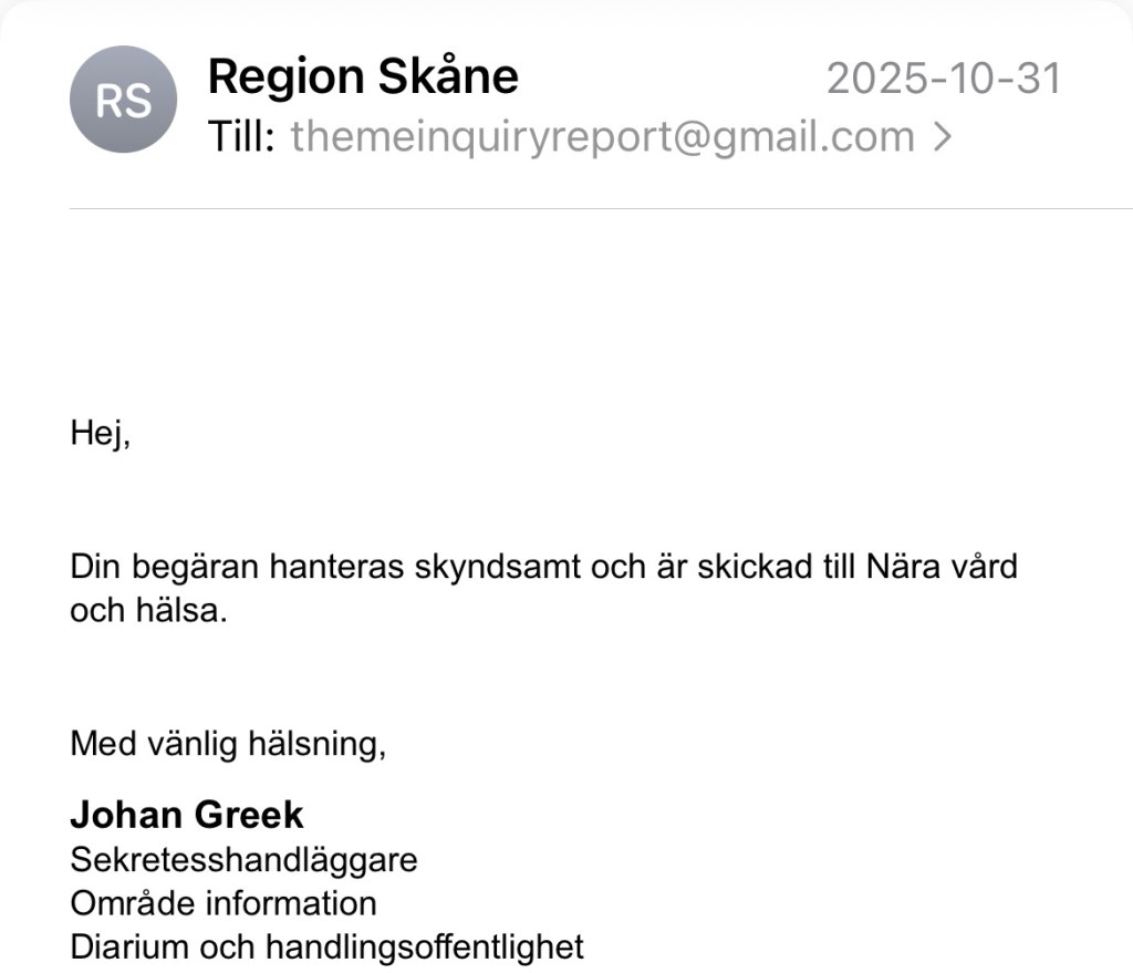 Jag kontaktade region Skåne för försöka förstå var någonstans i den praktiska processen regionen är i arbetet med att starta mottagningen (se skärmdumpar längst ner i detta inlägg).